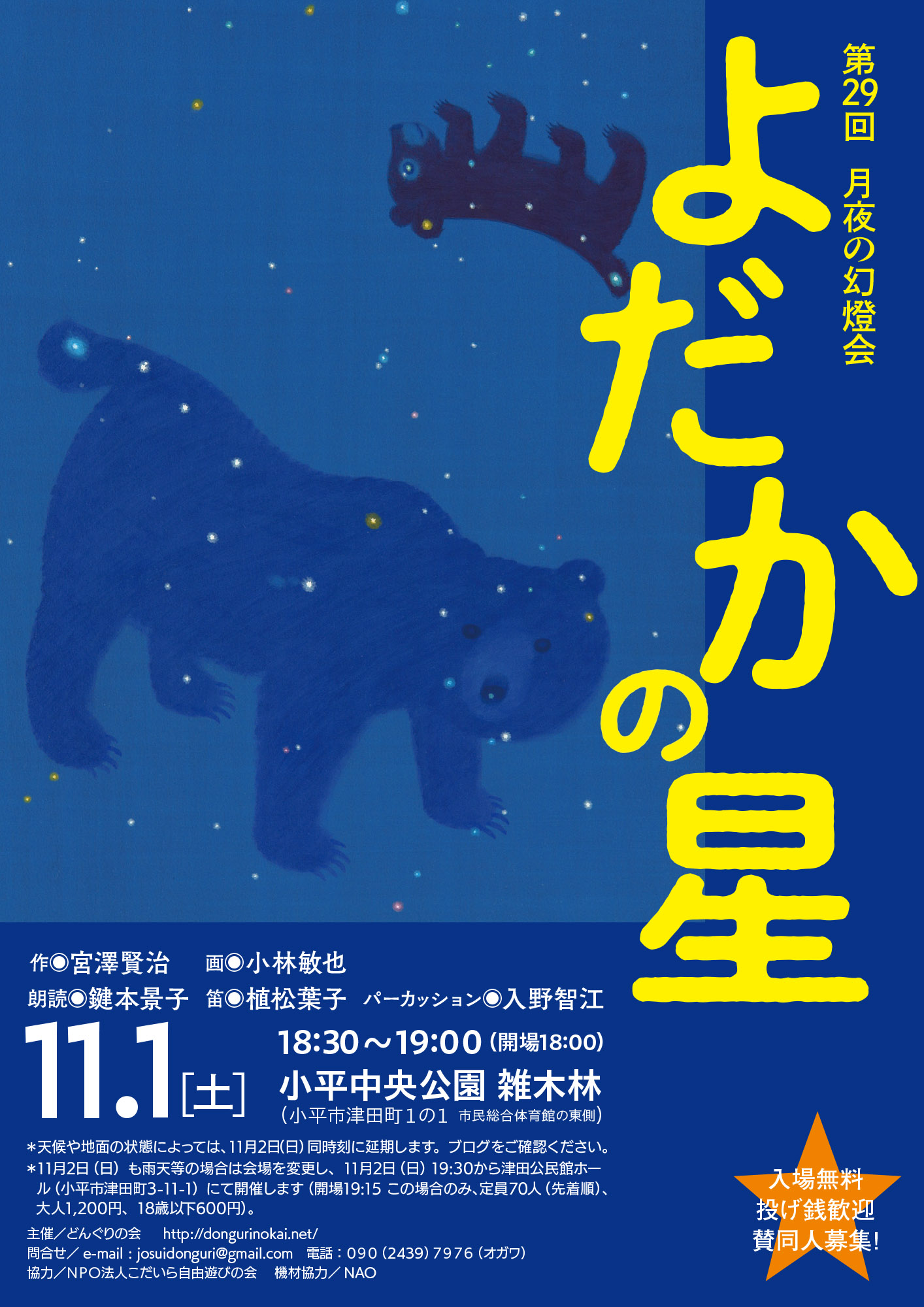 第29回月夜の幻燈会『よだかの星』11月1日(土)開催